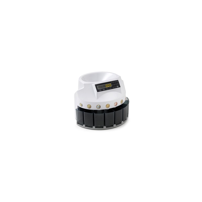 Conta dividi monete Euro a 8 cassetti, di facile utilizzo, silenziosa e veloce. Funzioni: BATCH: permette di impostare una quantità predefinita di monete da contare; ogni volta che il numero selezionato viene raggiunto la macchina si ferma. In caso di utilizzo con conteggio libero (funzione batch non attivata), l’arresto avverrà quando premuto il tasto START/STOP. REPORT: visualizzazione a display dei risultati di conteggio suddivisi per denominazione; PRINT: stampa del report visualizzato a display su stampante termica dedicata (cod.87185).